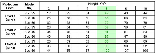 The protection radius varying depending on the height is suggested in NF C 17-102.